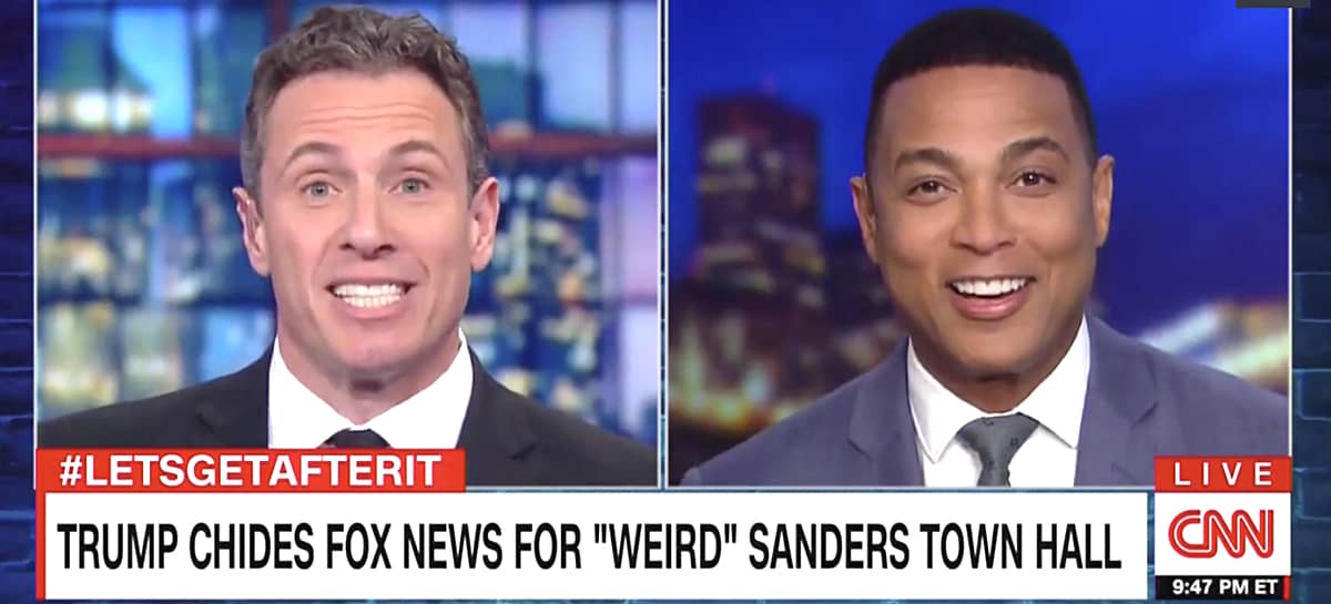 CNN's Chris Cuomo and Don Lemon has a laugh over a series of Trump tweets on Tuesday night reacting to the Bernie Sanders Town Hall that took place on FOX News.
