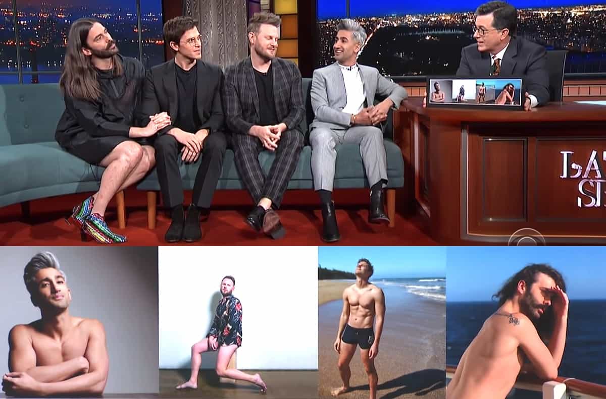 Antoni, Bobby, Jonathan, and Tan also answered questions about Queer Eye's heroes, about Colbert's beard, Michelle Kwan's sequins, Tan's hair, and their thirsty Instagram shots. Colbert then presented one of his own.