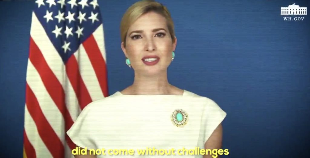 “#ByeIvanka” trended on Twitter Sunday morning thanks to the editors at the activist filmmaking group Meidas Touch, who put a spin on the canceled Kansas commencement speech Ivanka Trump released on her own yesterday, after having it canceled by two universities in that state.