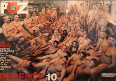 Last year, Spencer Tunick, the artist that has grown famous around the world for his massive photographic installations of naked bodies in public places, shot a cover for Poz magazine in which he packed Florent with naked people with HIV. Courageous to be sure, but when you realize that the menu boards, along with their activist messages and weather report contain a running graph of Florent's T-cell count, this kind of bold statement seems par for the course.