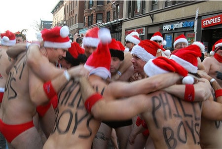 It's that time of year again. Boston's annual Speedo Santa Run took place over the weekend and our reader Patrick Lentz was there again to capture it. This year, the fur Speedo introduced by the Santa in the middle last year seems to have caught on. Also joining the run this year was a rowdy gang from Philadelphia.