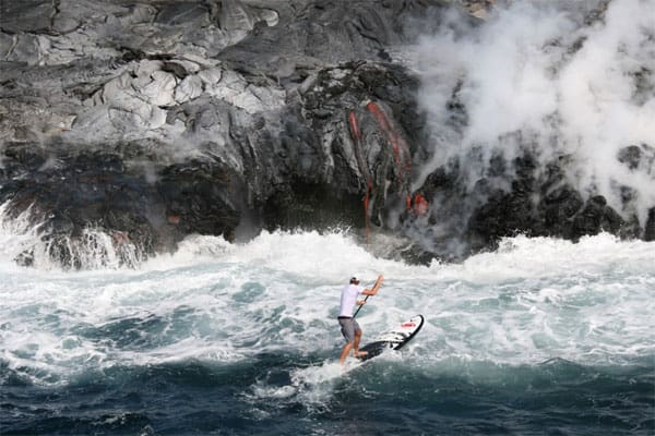 “Tentative at first, the adrenalin-junkie paddled to within 20ft of the lava, before moving back from water that reached 200C in places, melting the wax on his surfboard and burning his feet in the process.”
