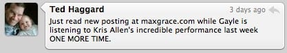 (via twitter) Kris Allen's got his Christian vote. Or so he says.