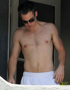 Chris Pine demonstrates the wonders of gold-digging for the paparazzi.