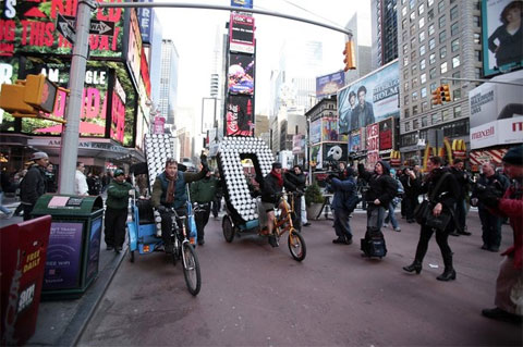 2010 arrived in Times Square today, by pedicab.
