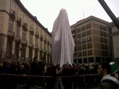 Real Madrid footballer Cristiano Ronaldo was honored with a statue 10 meters tall in Madrid yesterday: