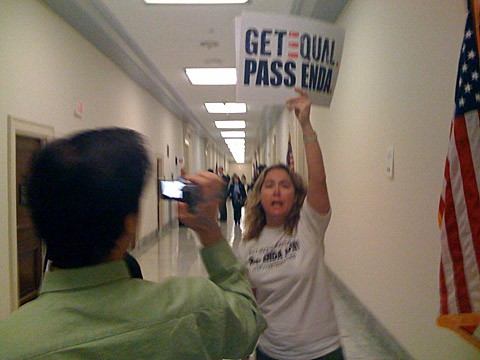 Activist group GetEQUAL has disrupted a meeting of the House Education and Labor Committee and delivered a set of markers to Chairman Miller, urging mark-up and vote on the Employment Non-Discrimination Act (ENDA).