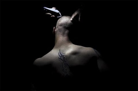 A U.S. soldier from Bravo Company, 2nd Battalion of the 508 Parachute Infantry Regiment of the 82nd Airborne, has his head shaved by flashlight outside Kandahar. (via daylife)