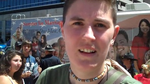 This counter-protester, named Alice, says the pro-equality group there was very peaceful, which is a good thing, because some are saying that the only reason NOM is holding this tour, given its abysmal attendance, is to draw counter-protestors out so they can prove intimidation in their court battles.