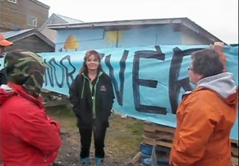 The HuffPost reports: "Kathleen Gustafson is a teacher married to a local commercial fisherman. She felt like Sarah Palin had let the state down by becoming a dollar-chasing celebrity and ignoring the oath of office she'd sworn on a Bible.Kathleen was motivated by the fact Palin was using the very place where her family makes a living to fortify the Palin personality cult — pretending to do the very thing they worked so hard to sustain. Initially, Kathleen just wanted to waste a little of the camera crew's time, since Palin wasted so much of her time purporting to represent Alaska's interests.She didn't imagine Palin would be so easy to draw out."
