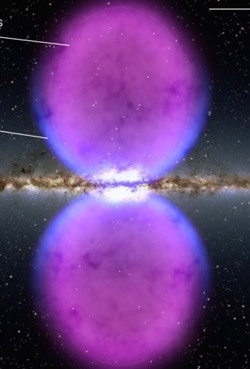 Massive gamma ray bubbles found on either side of Milky Way: "At 50,000 light years tall together, they extend from the constellation Virgo to the constellation Grus and are among the largest such structures ever found."