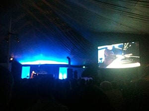 The makeshift concert hall for Sir John was an elaborate tent, lined with curtains and backlit with soft lighting. There were about 500 assigned chairs, two video screens and a mini-camera perched on the right side of the keyboard, offering viewers high-definition proof that even at age 63, this is one versatile pianist. The screens were almost not necessary; there was no bad seats in this house.