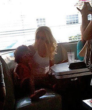 The imposter rolled up to Big Pink restaurant with four SUVs and a security detail of 10. Once her security did a sweep, the blonde look-alike enjoyed breakfast. The poor man's Gaga then caused chaos at French Connection in South Beach, where, a spy said, "Salespeople flocked to assist her, even helping her try on clothes for 30 minutes. She was swarmed by fans screaming 'Happy Birthday!' " And Guess rep Alina Hauptman sent a breathless press release complete with a photo of faux Gaga at their Lincoln Road store, saying, "The crowd was getting so out of control that security needed to shut down the store so Lady Gaga could browse . . . [she] purchased the Lucy Lace Skirt."