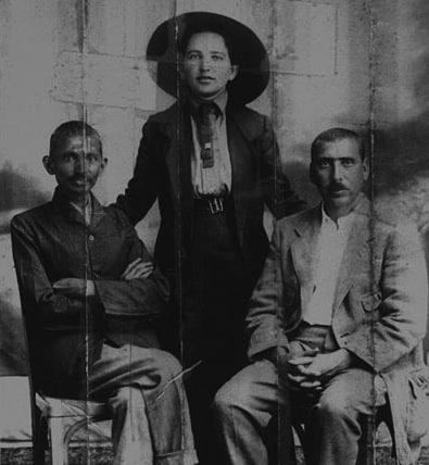 In the above photograph, taken in 1913, Gandhi is to the left and Kallenbach to the right. Gandhi's secrerary, Sonia Schlesin, is in the center.