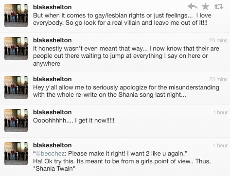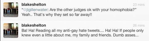 The Voice judge Blake Shelton, who is being called the show's break-out star by EW, unleashed a homophobic tweet last night:
