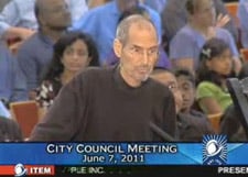 Here's something different. We're used to seeing Steve Jobs present something, but this time it's to the city council of Cupertino, and it's a new futuristic campus for Apple. There's not a straight piece of glass in the building, according to Jobs.