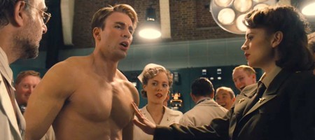 And not just because of that spectacular literal swelling that you've already seen in the TV spots when Chris Evans emerges newly muscled from that sci-fi silly metal cocoon.