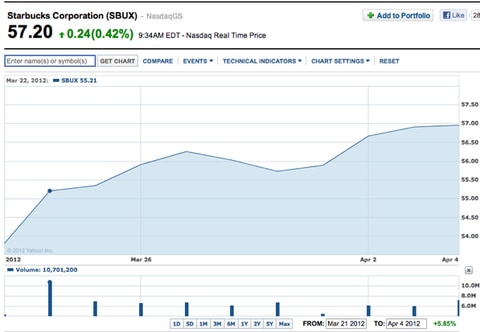 Starbucks CEO Howard Schultz said last week the coffee giant hasn't seen any diminished sales since anti-gay group National Organization for Marriage launched a flailing boycott over the company's LGBT and equality-inclusive policies. Their stock clearly hasn't suffered, either.