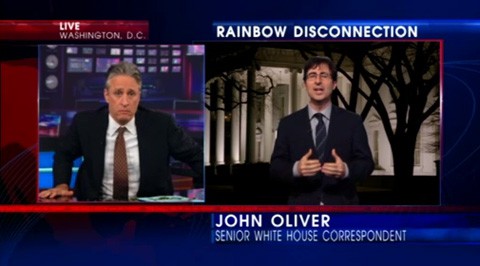 Jon Stewart looks at the sh*tstorm stirred up by Joe Biden's all too sincere remarks about gay marriage and fictitious gays on TV, and how they've created a "rainbow disconnection" at the White House.