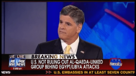 In a conversation with conservative pundit Ann Coulter about the attacks on U.S. Embassies in Libya and Egypt, Fox News host Sean Hannity said that President Obama's response, predictably described as an “apology,” makes the commander-in-chief look like a “wimp”. He does not say, however, that the response he and Coulter are discussing in fact came from embassy officials in Cairo.