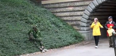 Many people have Halloween traditions. This guy dresses as a bush and scares people. This year he decided to do it in NYC's Central Park.