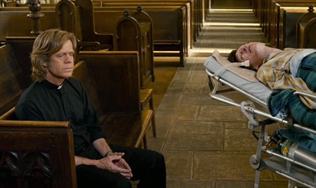 This longwinded preface isn't as off-topic as it sounds for a review of THE SESSIONS. The sexually-minded lightly funny new drama stars Oscar nominee John Hawkes (Winter's Bone) as Mark O'Brien, a paralyzed man who dreams of losing his virginity from the discomfort of his iron lung. Once his empathetic liberal priest (William H Macy) suggests that Jesus wouldn't object, "in my heart I think he'll give you a free pass on this one," O'Brien hires a sex surrogate named Cheryl (MIA Oscar winner Helen Hunt) to deflower him. The set up is like one of those raunchy teen sex comedies where everyone's end game is to "do it." Minus the frantic physical comedy — iron lungs not being naturally inclined toward slapstick.