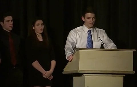 Our reader Scott Hester-Johnson sent us this clip of Jacob Rudolph, a high school senior in Parsippany, New Jersey, who came out to his entire class at their awards ceremony (Class Clown, Most Likely to Succeed, etc.) on January 18.