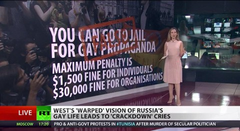 RT (formerly Russia Today), the partially state-funded network founded with the intention of improving Russia's image abroad, takes a look at American anger at Russia's ban on "gay propaganda" and tries to make the argument that the silly "warped" Americans don't know what they're talking about and the law is simply in place to protect children from the evils of homosexuality.