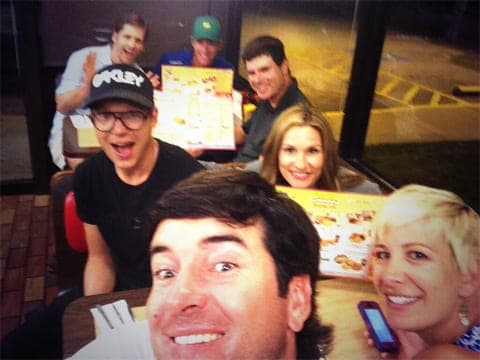 PGA Golfer Bubba Watson celebrated with a family dinner at Waffle House after winning the 2014 Masters tournament for the second time in three years over the weekend.