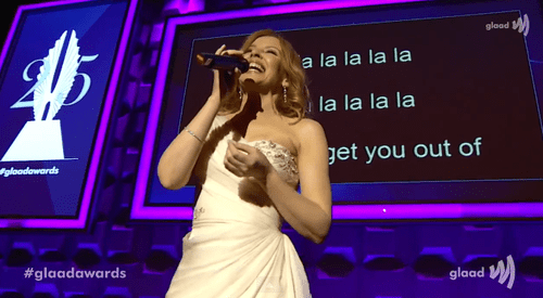 Before the performance, Minogue also took a moment to thank her gay fanbase and GLAAD.