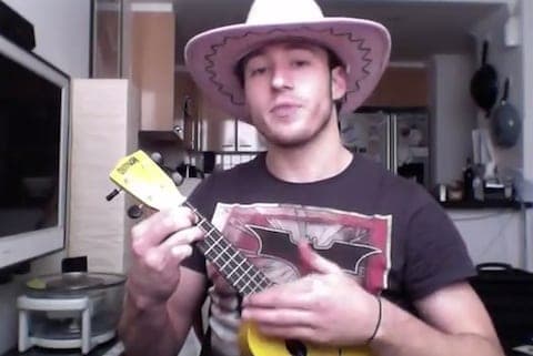 Procrastinating before his end-of-semester exams, Australian 2008 Olympic champion diver Matthew Mitcham performs Dolly Parton's "Dumb Blonde" with his ukelele.