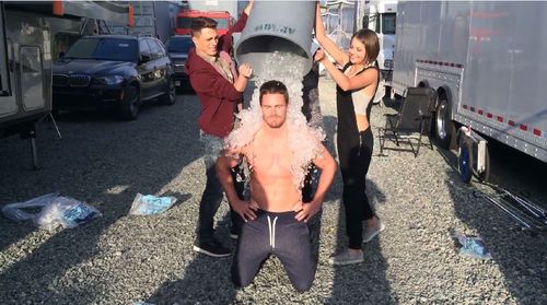 Arrow hunk Stephen Amell is the latest star to strip down and take the ice bucket challenge helping to raise awareness for ALS, often referred to as Lou Gehrig's disease.