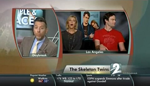 KWGN's Chris Parente attempted to bluff his way through an interview with them after not having seen the film, and made the mistake of asking Wiig about her full-frontal scene, wondering if she has any advice for people on going nude.