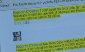 Florida State University College of Business senior lecturer Deborah O'Connor has resigned from her position following an outburst last week on Facebook in which she used racist, Islamophobic and homophobic slurs, reports the Tallahassee Democrat.