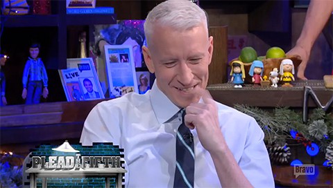 On last night's Watch What Happens Live, host Andy Cohen handed off his hosting duties to guest Kelly Ripa and let her run a little game of "Plead the Fifth" on fellow guest Anderson Cooper. The game is one of the recurring gambits on WWHL where a guest is asked three questions, may plead the fifth to one but must then answer the other two. Ripa dove in by asking Cooper whether he would rather have sex with her or her husband, Mar Consuelos. The answer may seem obvious (for obvious reasons), yet the banter that ensues is awkward enough to illict a chuckle from even a Scrooge.