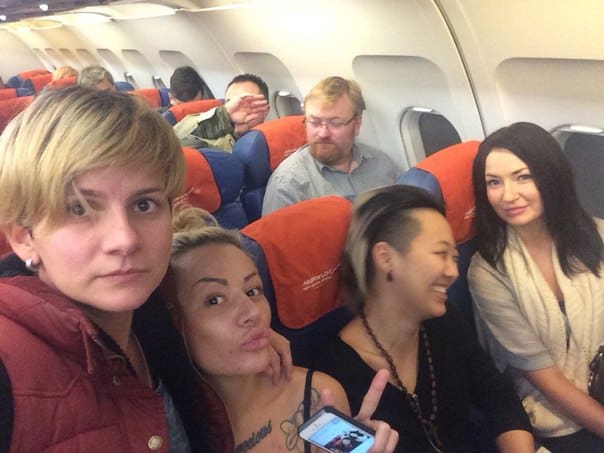 On a flight from Moscow to St. Petersburg, Kseniya noticed that the notorious lawmaker was sitting behind her and decided that was the perfect time to take a selfie…while making out with her girlfriend. According to Meduza, the caption of the Instagram photo read: