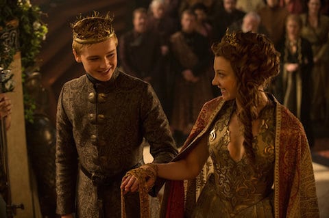 Oh, happy day. Finally, a wedding that doesn't end in murder. Tommen (Dean-Charles Chapman) and Margaery have made it official. The two take a brief respite from consummating the marriage on their wedding night for the new queen to start sowing some seeds of her own. Now that Tommen's had a taste of adulthood, she just casually drops in how nice it must be that Tommen's mother Cersei will be around forever, constantly keeping her little boy under her watchful eye. Super sexy stuff.