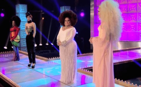 4. When it comes to Violet's final runway, I'm on Michelle Visage's side. After weeks of some real knock-out looks, tonight's androgynous ensemble did not feel like her best drag. The dancing was not great, nor was her acting. After building momentum for weeks, tonight was a flop. It felt as if the editing was leading us to a Violet departure, and none of her interviews or exchanges with Ru added enough to make her spot in the final three feel like a triumph.