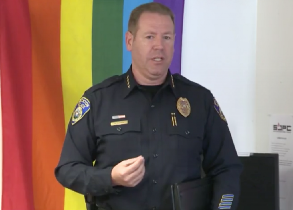 The Stockton Record, which published the letter, reports that Police Chief Eric Jones (above) attended a forum at the San Joaquin Pride Center on Thursday to discuss the issue: