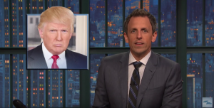 In a recent Late Night monologue, Seth Meyers highlighted thrice-married Donald Trump's continued opposition to gay marriage. Meyers also poked fun at GOP presidential longshot Lindsey Graham for saying Trump was like “the Almighty Oz” from The Wizard of Oz in that there's “nothing behind the curtain.”