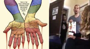 Ben Borgman, the gay owner of the Seattle coffee shop Bedlam, was filmed kicking the “Christian” group Abolish Human Abortion out of his business. The group, which told Borgman he could be “saved,” had been distributing a poster featuring a set of blood-covered rainbow hands which had just let go of an aborted fetus. You … Continue reading Anti-Gay Christian Group Kicked Out of Seattle Coffee Shop After Distributing Disgusting Poster: WATCH