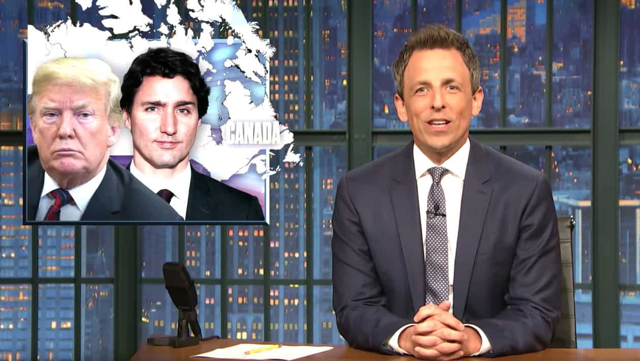 Returning to Late Night after a break, Seth Meyers took ‘A Closer Look' at Trump's awful G7 summit, starting with his blow-up at Canadian Prime Minister Justin Trudeau: