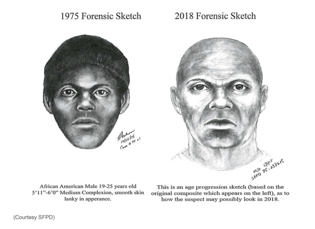 The San Francisco Police Department made a public plea for tips, and released a new sketch of what the suspect may look like today as well as an audio recording of a call to police dispatch by an unknown man reporting a body along the beach after the first homicide in 1975 reports USA Today.