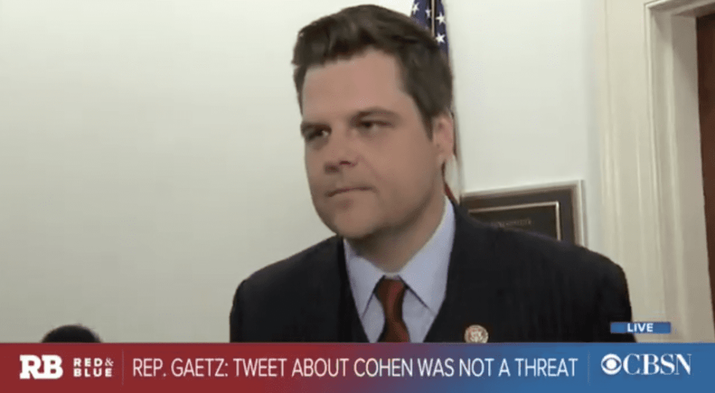 Rep. Matt Gaetz defended his tweet directed at Michael Cohen, saying it should not be perceived as a threat https://t.co/aYIcGo5zvO pic.twitter.com/YX5q6fkJnW