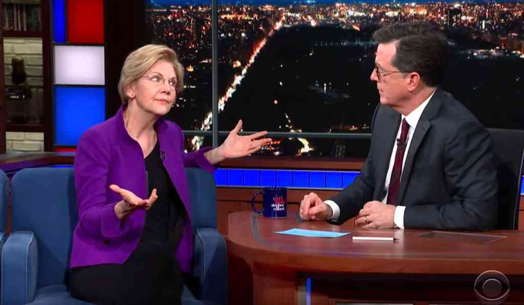 In her fifth appearance on The Late Show, Elizabeth Warren demanded that the public see the Mueller Report: “We're big, we can all read it.”