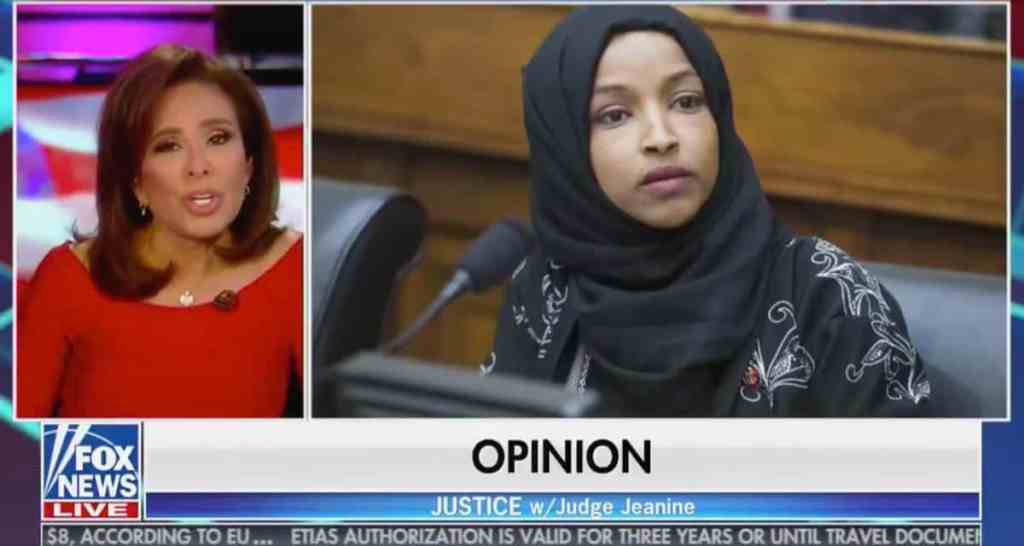Said Pirro in one of her ‘Opening Statement' segments last week: “Think about it: Omar wears a hijab, which according to the Koran 33:59, tells women to cover so they won't get molested. Is her adherence to this Islamic doctrine indicative of her adherence to Sharia law which in itself is antithetical to the United States Constitution?”