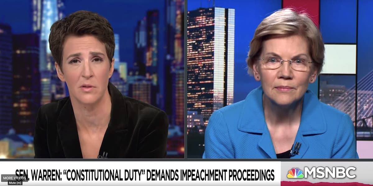 Elizabeth Warren is the first candidate to call for impeachment proceedings against Donald Trump. Warren joined Rachel Maddow on Friday night following a series of tweets in which the Massachusetts senator.