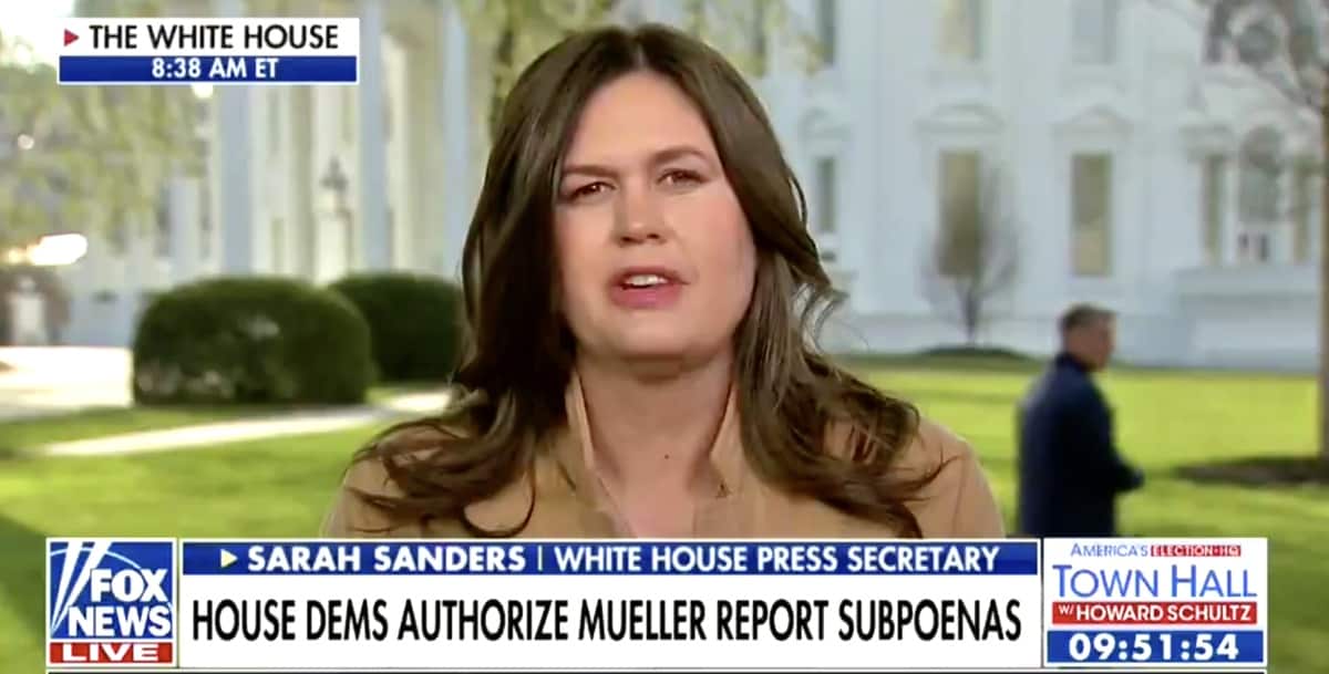 Asked to react to reports that Mueller’s investigators are unhappy with how Attorney General Bill Barr has characterized the findings in the Mueller Report and that the findings are actually much more damaging to Trump than Barr portrayed, Sarah Sanders branded the Democrats “sore losers.”