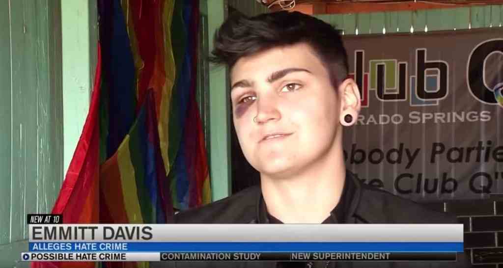 Emmitt Davis, a Colorado Springs transgender man, was attacked on Saturday as he was sitting on his own front porch with his partner.