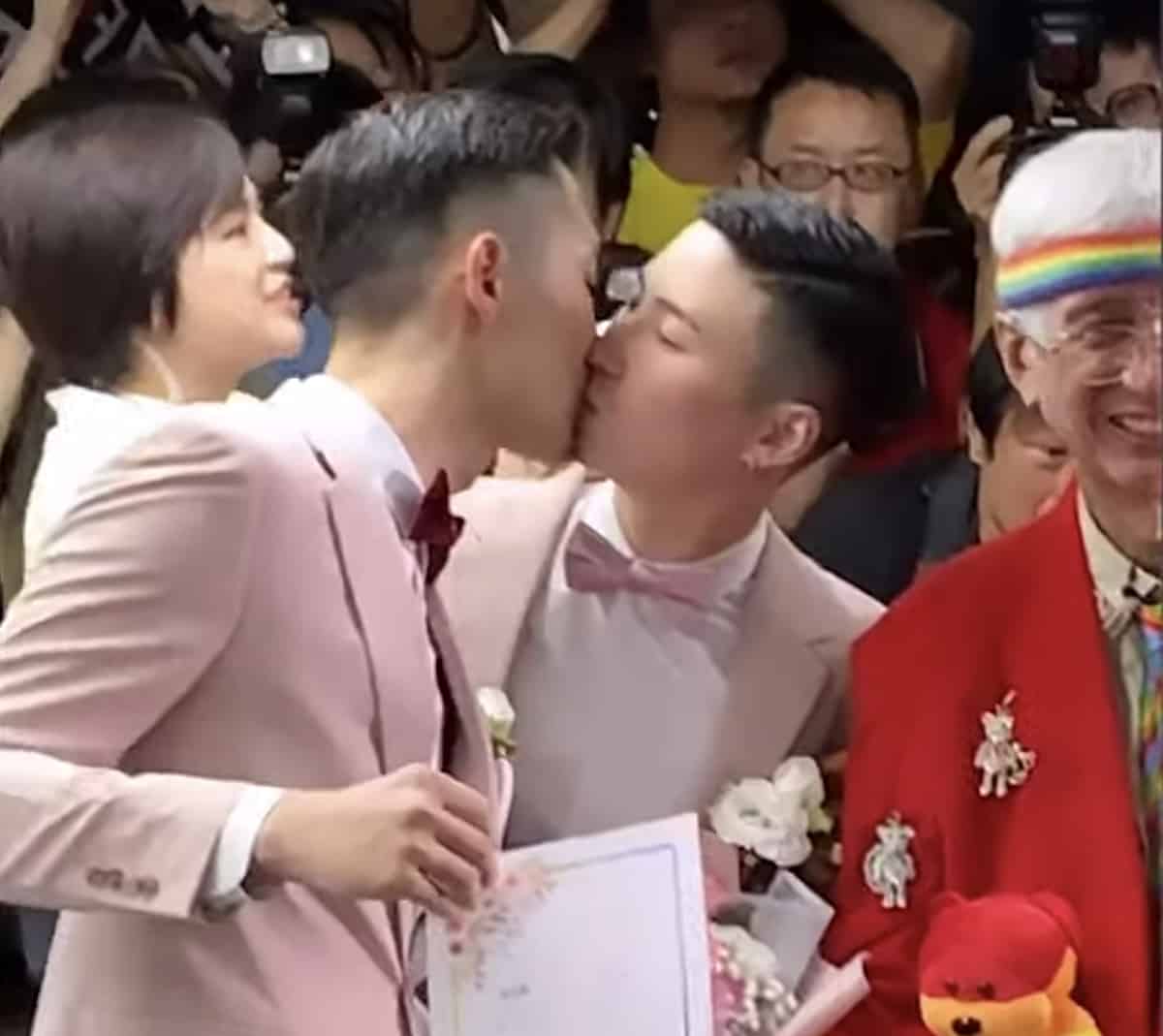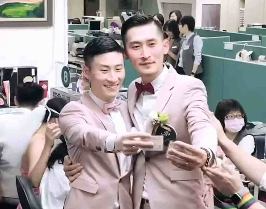 Shane Lin and Marc Yan married at the Xinyi District Household Registration Office in Taipei this morning. The couple was the first to arrive at the government office to officially register as a married couple, MSN reports: “Outside the government building, crowds gathered as Taiwan officially opened for the first time the Household Registration Office for same-sex couples on May 24. LGBT rights supporters were delighted at the landmark decision legalising same-sex marriage which was passed on May 17. Liberal Taiwan, unlike neighbouring China, has a large gay community and its annual gay pride parade is the biggest in Asia.”